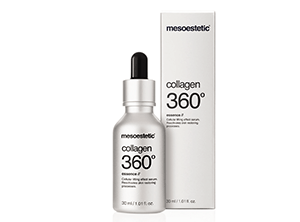 Collagene 360° Essence, siero cellulare effetto lifting, dalla texture evanescente, riattiva le funzioni vitali della pelle e la protegge dai fattori ambientali. Dall’effetto tonificante, agisce sulle rughe e sulla perdita di tono. In pratico formato contagocce, da applicare mattino e sera sulla pelle perfettamente pulita (max. 2 o 3 gocce). Attivi: Collagene marino, Chronosmart peptide, Hydroxyprolisilane, Nicotinamide.