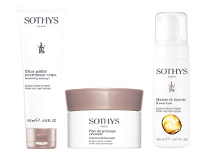 Il trattamento professionale di Sothys Soin Sensations Orientales è completato da quattro prodotti domiciliari, studiati per prolungare il piacere del massaggio in cabina: la Mousse de douche, per detergere la pelle; Elixir gélifié nourrissant corpo per una cute vellutata; Pâte de gommage orientale per esfoliare e idratare e infine Voile sublimateur jambes, un gel ambrato per perfezionare le gambe regalando i leggero velo ambrato.