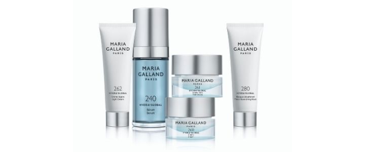 La gamma Hydra’Global di Maria Galland Paris è composta da 5 prodotti domiciliari e un nuovissimo trattamento in cabina: