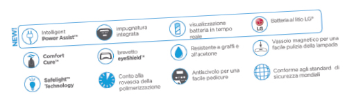 - Progettata utilizzando l’esclusivo Intelligent Power Assist™ per garantire una potenza di polimerizzazione costante e ad alte prestazioni