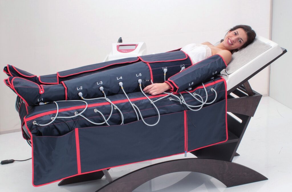 Il pressomassaggio sequenziale esercita sul circuito linfatico una benefica azione tonificante e drenante, che favorisce la naturale formazione di sostanze nutritive, migliorando sia il tono che l’aspetto estetico della pelle e contrastando gli inestetismi estetici più frequenti come cellulite, adiposità localizzata, ritenzione di liquidi. L’aumento naturale della diuresi, nei soggetti con ritenzione idrica, produce effetti benefici a sostegno dell’eliminazione delle scorie trattenute nei tessuti. Questa funzione prevede l’impostazione del tempo di trattamento, la regolazione del tempo di gonfiaggio per ogni canale da 1’ a 15”, la possibilità di esclusione di quest’ultimo per ogni singolo canale e 3 differentilivelli di regolazione dell’intensità di lavoro.