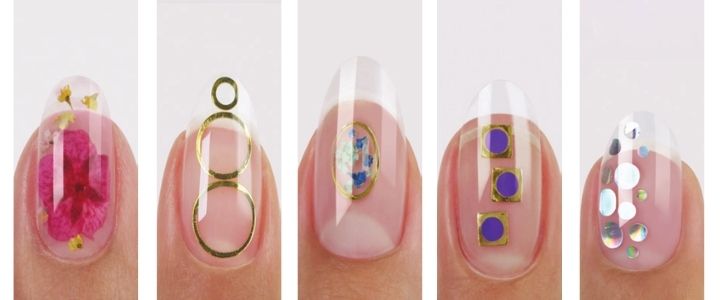 Le Nail Art incapsulate sono di grande effetto e semplici da eseguire. Tra i quattro prodotti del sistema, si consiglia di utilizzare CND Plexigel Bonder + Builder + Protector Top Coat, per realizzare una nail art con ricostruzione dell’unghia. Prima di iniziare è importante scegliere accessori decorativi di spessore ridotto, per non dover creare troppo volume una volta incapsulati. Dopo aver preparato le unghie secondo il protocollo P.R.E.P., va applicato uno strato sottile di CND Plexigel Bonder. Bisogna poi posizionare le Future Form e creare l’allungamento dell’unghia applicando un sottile strato di CND Plexigel Builder sia sull’unghia naturale sia sulla Form e polimerizzare per 60 secondi nella CND LED Lamp. Successivamente va applicato un altro strato sottile su questa struttura, senza polimerizzare: questo strato deve essere usato come base per posizionare le decorazioni. Dopo la polimerizzazione