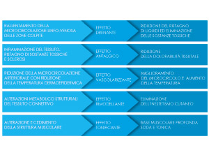 La metodica Endosphères Therapy è in grado di agire su ognuna delle modificazioni indicate nella tabella accanto, ripristinando dapprima le fisiologiche condizioni vascolari e tissutali e, in seguito, effettuando un rimodellamento localizzato sull’inestetismo cutaneo.