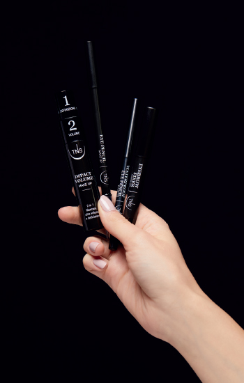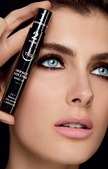 La preziosa routine di make-up che TNS Firenze dedica allo sguardo parte proprio dal mascara, IMPACT VOLUME. Dotato di doppio scovolino, ha una duplice funzione: allunga e definisce le ciglia e dona un incredibile volume, già al primo passaggio. La nuova formulazione, ricca di cere naturali e sinteti che, permette una stesura del pigmento priva di di fetti, senza la formazione di grumi: un velo leggero avvolge le ciglia una ad una, modellandole, lascian dole leggere ed elastiche.