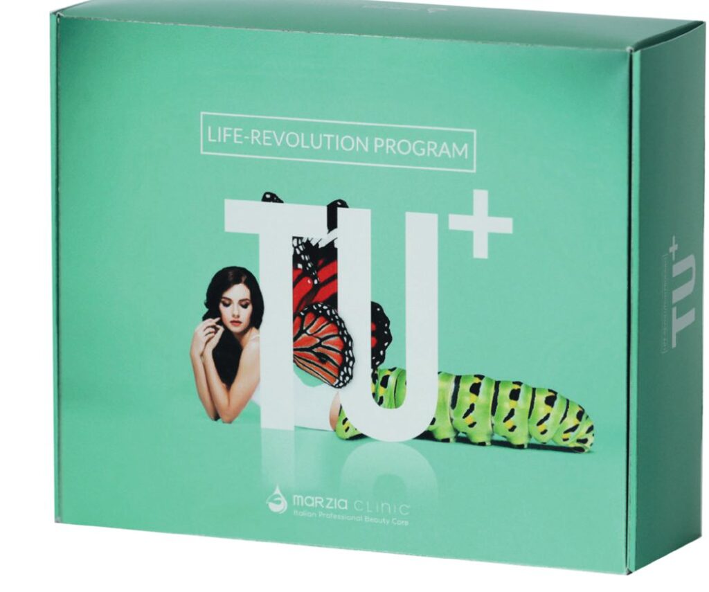 Il programma TU+ è composto da 2 integratori cutanei, formulati nei laboratori Marzia Clinic e da 4 integratori alimentari, studiati per supportare l’individuo nella fase acuta del programma. Ogni integratore possiede un nome specifico che richiama una specie diversa di farfalla, nonché simbolo di rinascita che perfettamente rappresenta TU+.