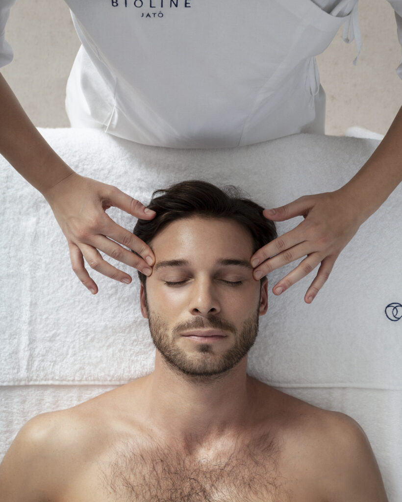 Un trattamento ad alta performance contro i segni di invecchiamento. Formulato per la pelle maschile, rigenera e riduce la visibilità di imperfezioni e lucidità, donando al viso un aspetto più giovane, sano e visibilmente tonificato. Ideato per offrire risultati visibili in poco tempo, rappresenta un momento irrinunciabile della beauty routine maschile. In soli 45 minuti, l’esclusivo De-stress Mineral Massage oltre a favorire l’assorbimento delle sostanze funzionali, promuove un’azione destressante, ossigenante e distensiva. È inoltre possibile utilizzare, in associazione, anche le FBE – Relaxing, Draining e Firming Touch – consigliate in apertura e chiusura di trattamento.