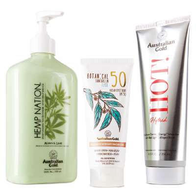 Le novità di Australian Gold riguardano anche i cosmetici solari ad azione intensificante e idratante. Tra queste, HOT! Hybrid, con peptidi stimolatori di Collagene ed Elastina; Smooth Legs, specifico gambe che rallenta la crescita dei peli e rassoda e la combinazione idratante/body scrub Hemp Nation Agave & Lime, ad azione antiossidante.