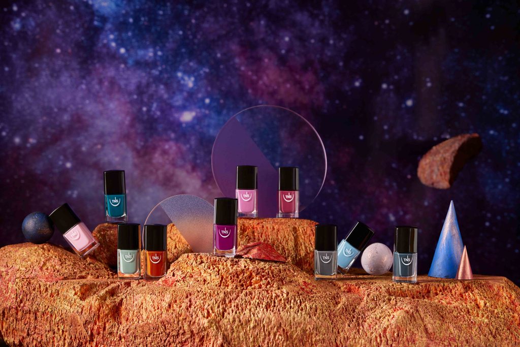 La collezione include 10 nuances: Supernova, un rosa impalpabile, morbido e delicato come il velluto, che veste di romanticismo le unghie. Hydra, un azzurro polveroso che ricorda il cielo velato del mattino, ideale per manicure delicate o per realizzare accent manicure dai contrasti vivaci. Syrios, un rosa deciso, ricco di fascino per una manicure femminile e di tendenza. Mizar, perfetto per una manicure autunnale, questo smalto verde salvia veste le mani di sofisticata eleganza. Alhena, un marrone autunnale che crea un’elegantissima manicure. Marte, il suo colore è preso dalle sue rocce, un ruggine ultra brillante, perfetto nelle manicure invernali. Cassiopea, un  colore vivace e pieno, luminosissimo come la costellazione da cui prende il nome. Vega, un magenta super brillante, perfetto per una manicure sofisticata dal tono vivace. Elettra, un tono blu elegantissimo sia per unghie monocrome sia per creare contrasti in eleganti accent manicure. Luna, un grigio scuro per una manicure dal tono intenso e misterioso.