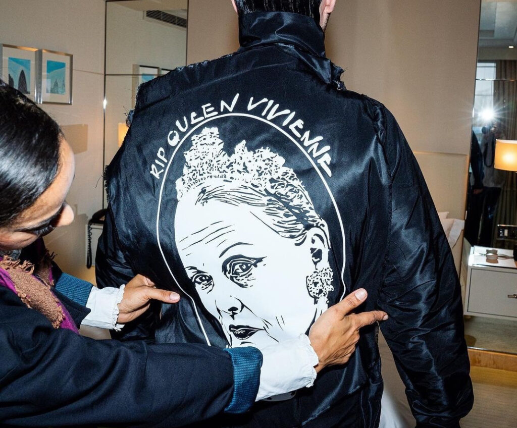 Da Helena Bonham Carter a Kate Moss ai colleghi Marc Jacobs e Victoria Beckham, sono tantissime le star della moda e dello spettacolo che hanno partecipato alla commemorazione dedicata a Vivienne e le hanno reso omaggio indossando le sue creazioni. A destra, uno scatto pubblicato su instagram dall’influencer svedese Fredrik Robertsson che indossa una stola ispirata all’iconica stampa God Save The Queen, ma con un omaggio a Dame Vivienne.