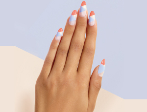 Colori freschi come l’azzurro cielo e color perla iridescente accendono l’immaginazione. Una manicure dai toni soft e rassicuranti, perfetta per dare sfogo alla fantasia primaverile ed estiva realizzata con la…