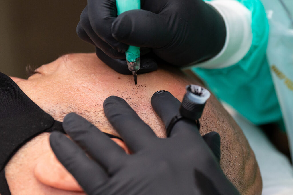 Gli aghi impiegati nella tricopigmentazione sono sottilissimi, costruiti appositamente per un impiego su cuoio capelluto. La percezione del dolore è un fattore molto soggettivo. Ci sono anche clienti che lo considerano rilassante. Il trattamento è in genere indolore. Si avverte un fastidio sopportabile, certamente meno invasivo di un tatuaggio artistico. Il compito dell’operatore è quello di rassicurare il cliente, ciò che sente è del tutto normale. Questo è importante anche perché ogni movimento della persona potrebbe causare un’imperfezione della manovra. A lavoro finito, il tessuto è infiammato, la zona appare subito rossa. Qualcuno può avvertire un leggero prurito e indolenzimento nelle ore seguenti. Nel giro di 48 ore il rossore diminuisce visibilmente. Per il post trattamento si consiglia l’applicazione di lozioni e unguenti lenitivi e decongestionanti.