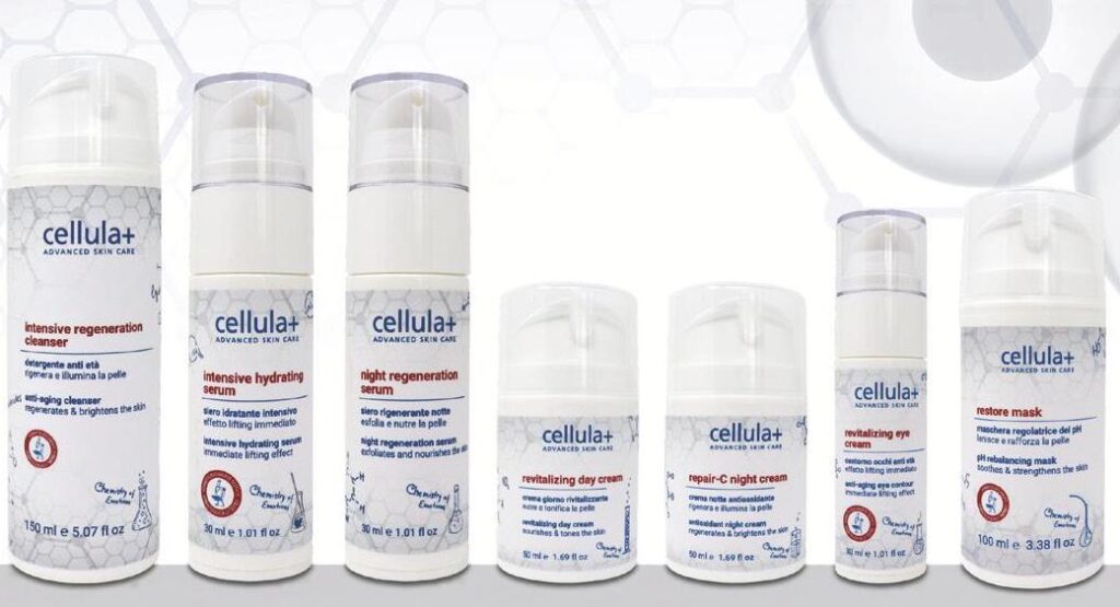 La nuova linea retail Cellula+ rispetta i più alti standard qualitativi in materia di rinnovamento cellulare e risponde alle più comuni esigenze di bellezza della pelle in modo immediato. Prodotti di nuova generazione che agiscono sia dall’esterno con cosmetici d’avanguardia, sia dall’interno grazie a integratori alimentari che supportano al meglio il benessere della pelle. Cosmetici essenziali e trasversali in grado di soddisfare le diverse problematiche cutanee; adatti ad ogni tipo di pelle e dermatologicamente testati per agire in piena sicurezza. Formulazioni specifiche e mirate al turnover cellulare e all’ossigenazione della pelle, per donare luminosità e tonicità all’incarnato, lavorando anche in profondità. In flaconi airless per assicurare un basso conte- nuto di conservanti e garantire l’integrità del prodotto, mantenendo così la filosofia delle confezioni monodose del trattamento professionale.