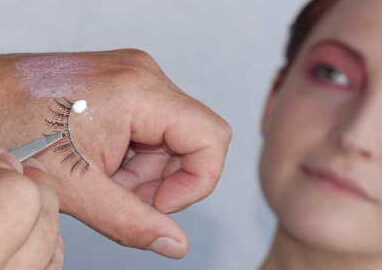 Le ciglia finte a ciuffetti, generalmente più comode da portare e dall’effetto più naturale, vanno posizionate tendendo bene la pelle vicino alle ciglia in modo che si crei lo spazio per l’applicazione che deve essere fatta ad intervalli regolari cercando di dare l’effetto allungato. Si utilizza solitamente una colla apposita che ha una durata media di circa 20 giorni. Poi partendo dal centro dell’occhio si va prima verso l’esterno e poi all’interno fino a completarlo. Per l’applicazione della frangia intera, invece, va messa un po’ di colla sul palmo della mano in modo che asciughi leggermente, poi si passa la frangia di ciglia sfiorando appena la colla sul bordo, tenendola con le pinzette.